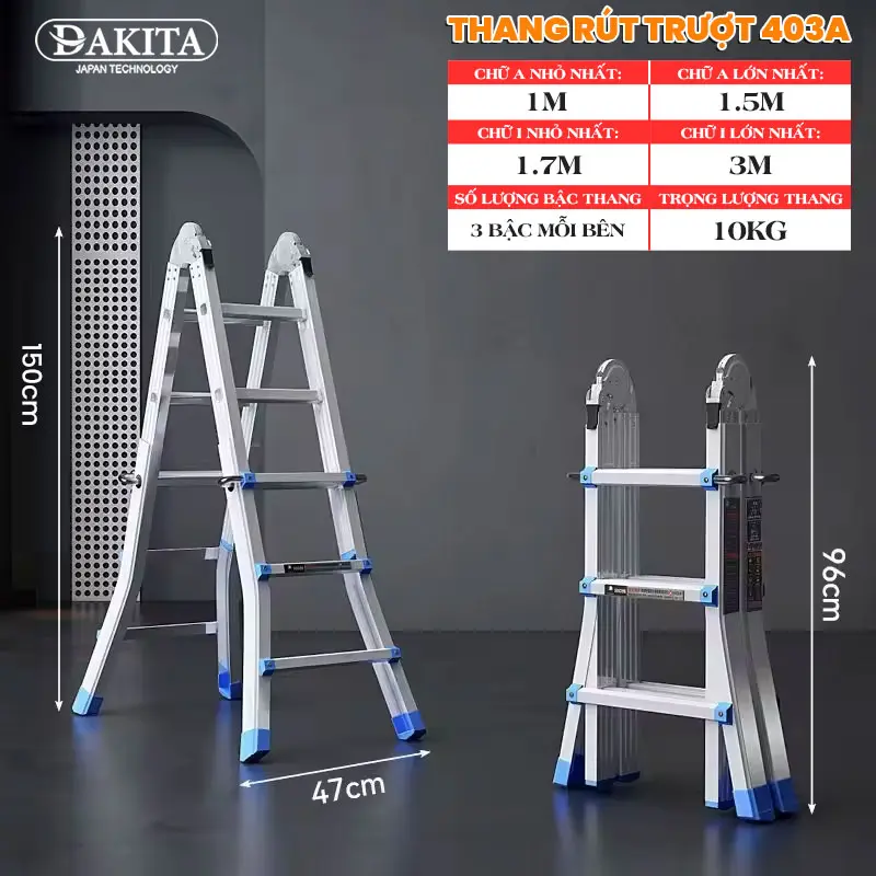 Tên sản phẩm: Thang Nhôm Rút Trượt Chữ A DAKITA DKT-403A