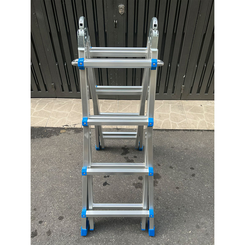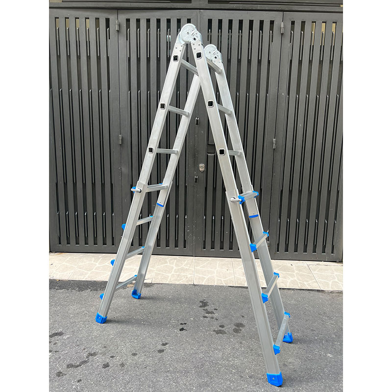 Kiểu dáng: Thang nhôm rút trượt loại 4 bậc mỗi bên, sử dụng được nhiều kiểu dáng: chữ A, duỗi thẳng chữ I. Xếp gọn khi không sử dụng.
