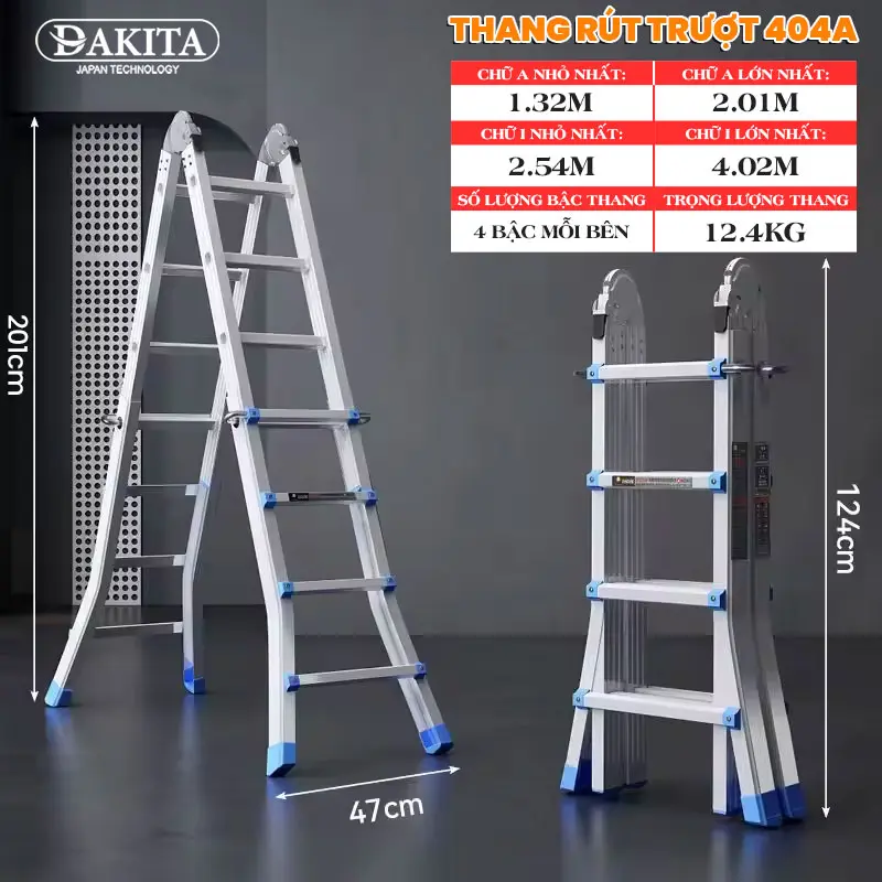 Tên sản phẩm: Thang Nhôm Rút Trượt Chữ A DAKITA DKT-404A