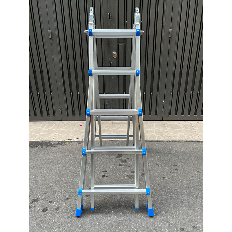 Kiểu dáng: Thang nhôm rút trượt loại 5 bậc mỗi bên, sử dụng được nhiều kiểu dáng: chữ A, duỗi thẳng chữ I. Xếp gọn khi không sử dụng.