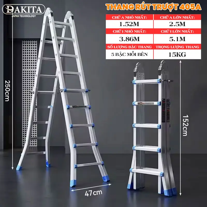 Tên sản phẩm: Thang Nhôm Rút Trượt Chữ A DAKITA DKT-405A