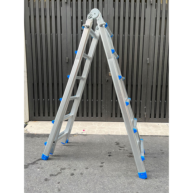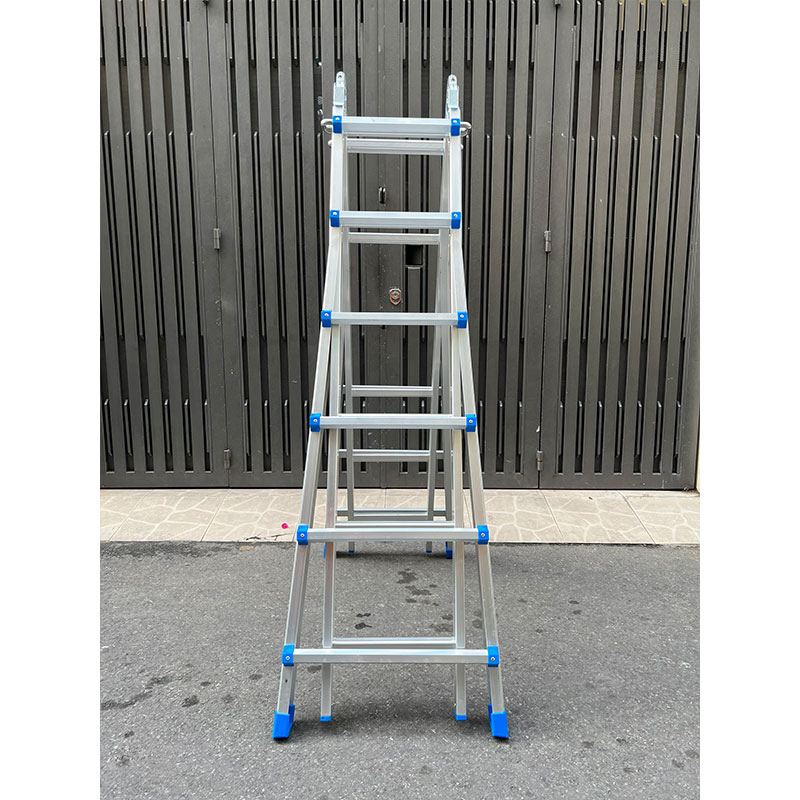 Kiểu dáng: Thang nhôm rút trượt loại 7 bậc mỗi bên, sử dụng được nhiều kiểu dáng: chữ A, duỗi thẳng chữ I. Xếp gọn khi không sử dụng.