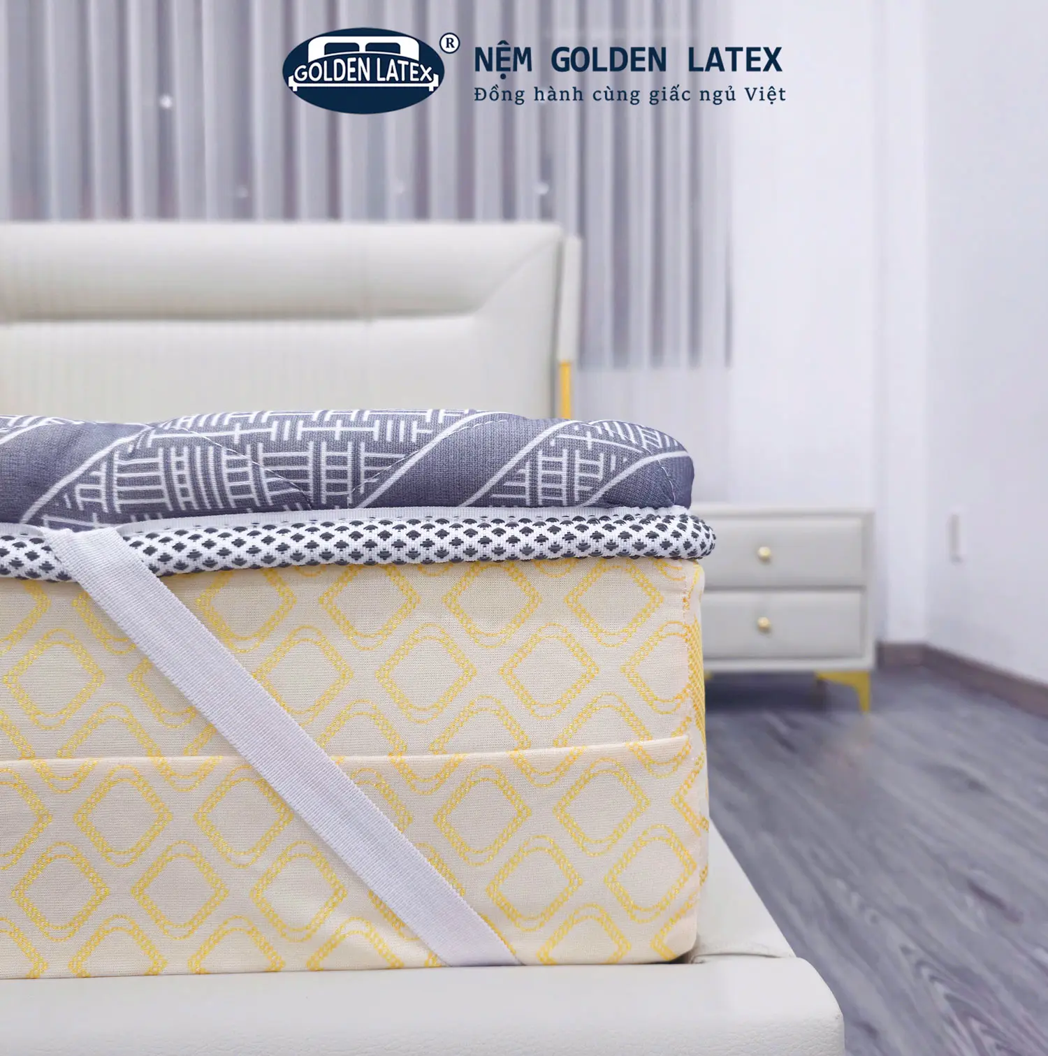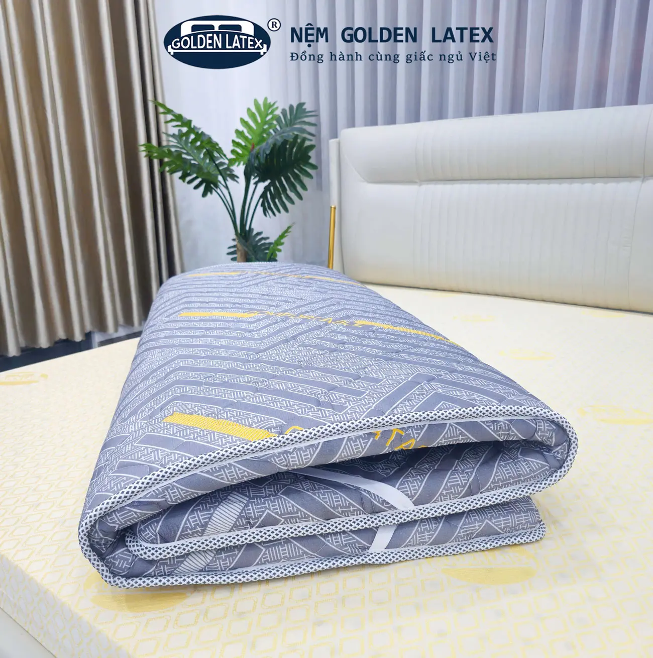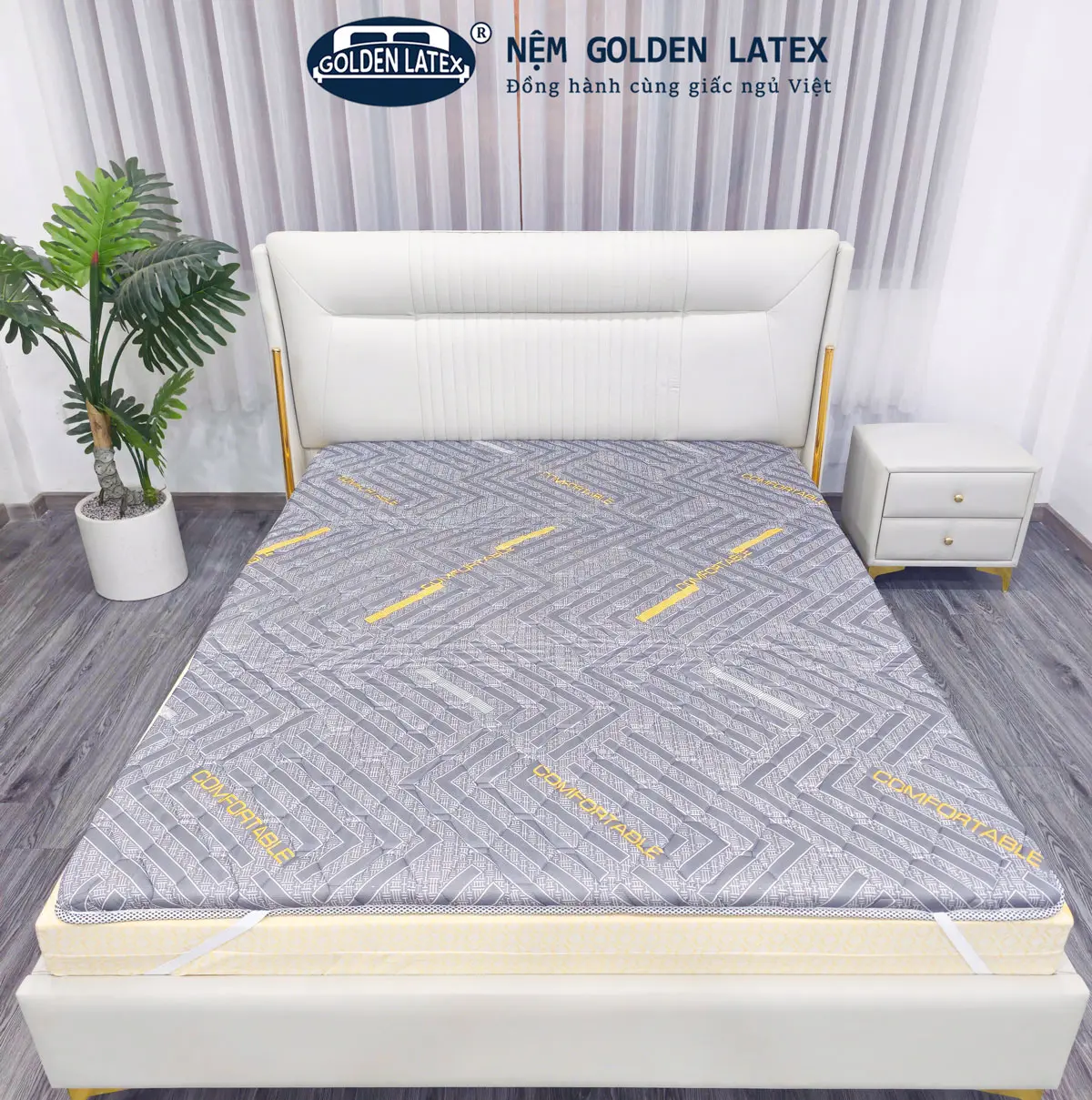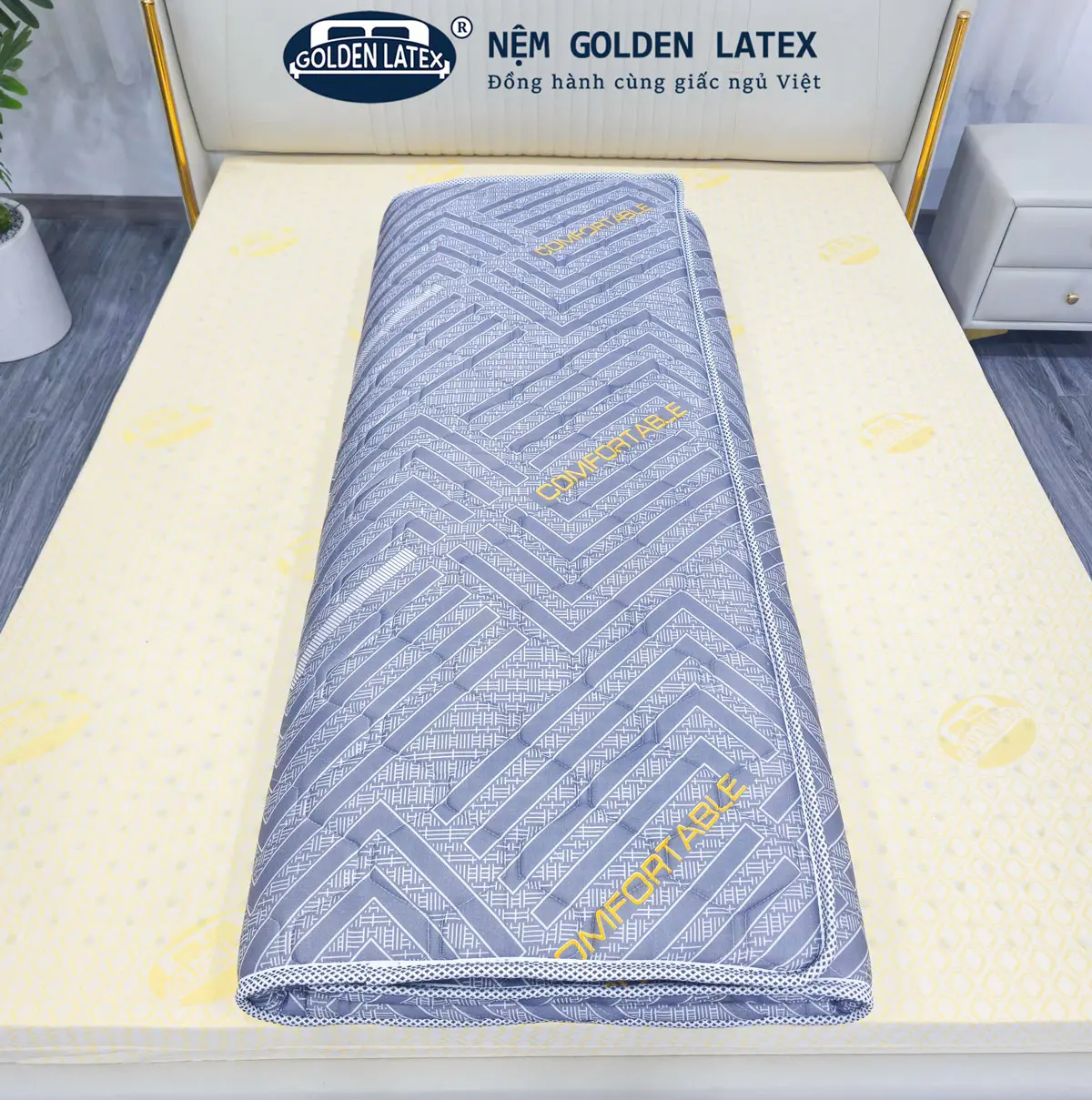 – Thiết Kế Sang Trọng: Áo nệm màu xám với thiết kế hiện đại, phù hợp với nhiều phong cách nội thất. Dù phòng ngủ của bạn được bày trí theo phong cách cổ điển hay hiện đại, Topper Golden Latex đều dễ dàng hòa hợp và tạo nên một không gian tinh tế.