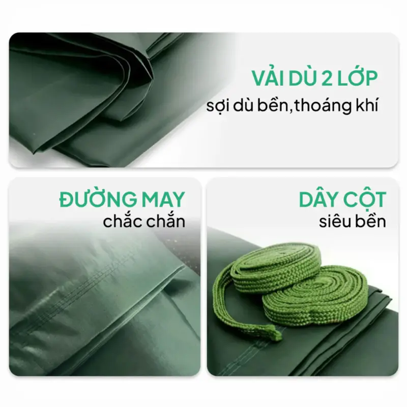– Thiết kế 2 lớp thoáng mát: Lớp dù kép giúp tăng cường sự chắc chắn và độ thoáng khí, tạo cảm giác dễ chịu ngay cả trong thời tiết nóng bức. Thiết kế 2 lớp còn giúp tăng độ bền và khả năng chống rách, mang lại tuổi thọ dài cho sản phẩm.