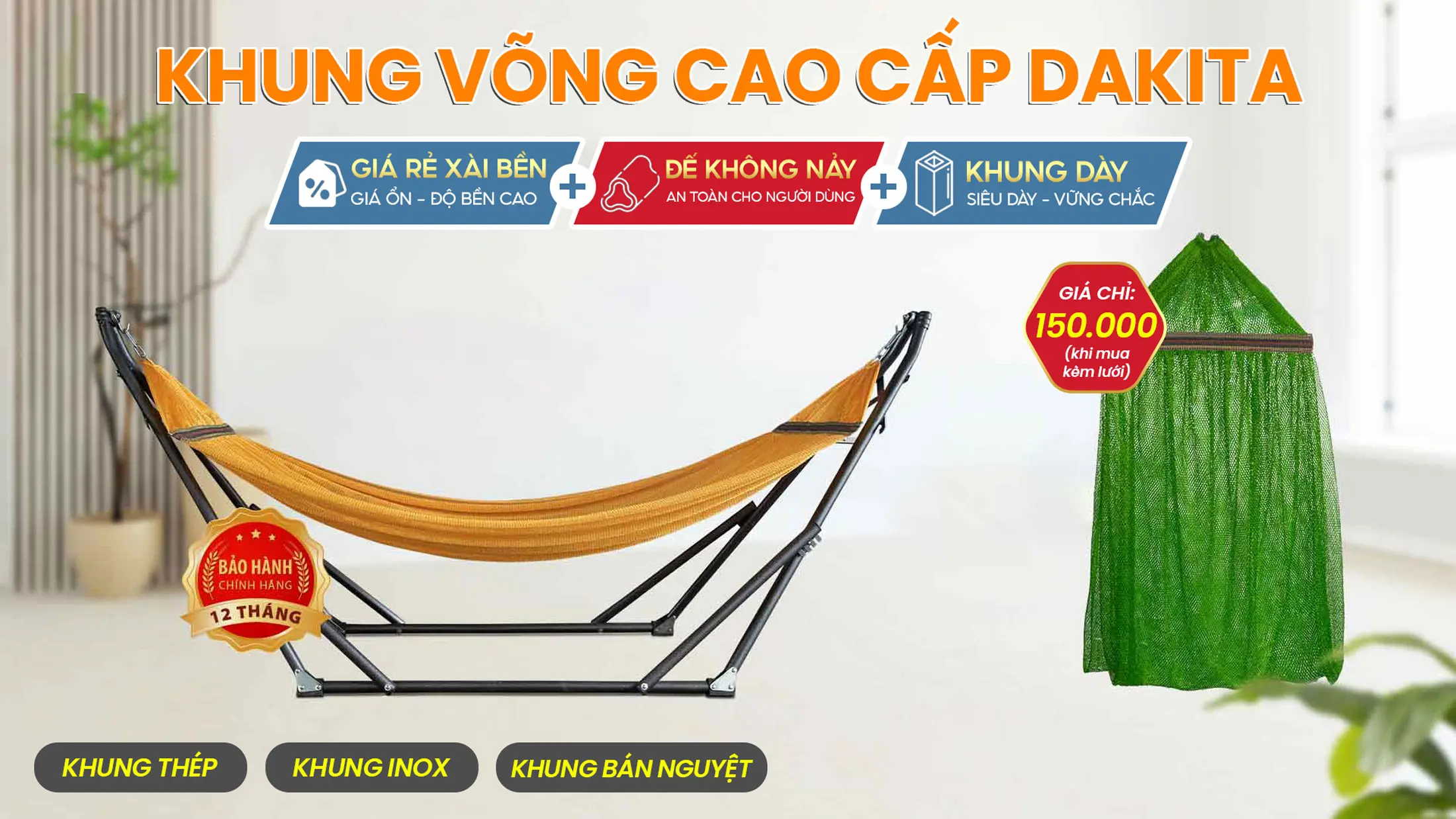 -46%[Khung Inox Cao Cấp] Khung Võng Bán Nguyệt Thư Giãn DAKITA DKV-02N – Sang Trọng Hiện Đại (Không Kèm Lưới)