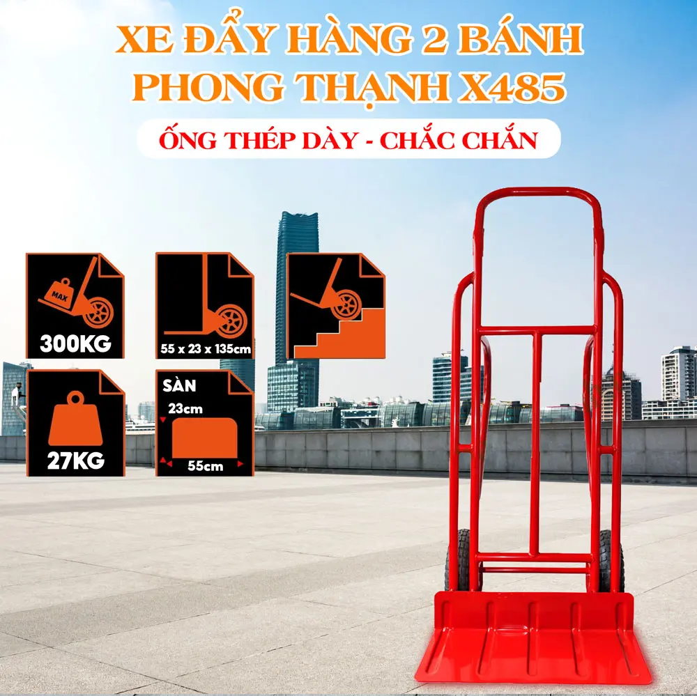 XE ĐẨY HÀNG HÓA 2 BÁNH X485 – THÉP DÀY CHẮC CHẮN – KHÔNG GỈ – BỀN CAO
