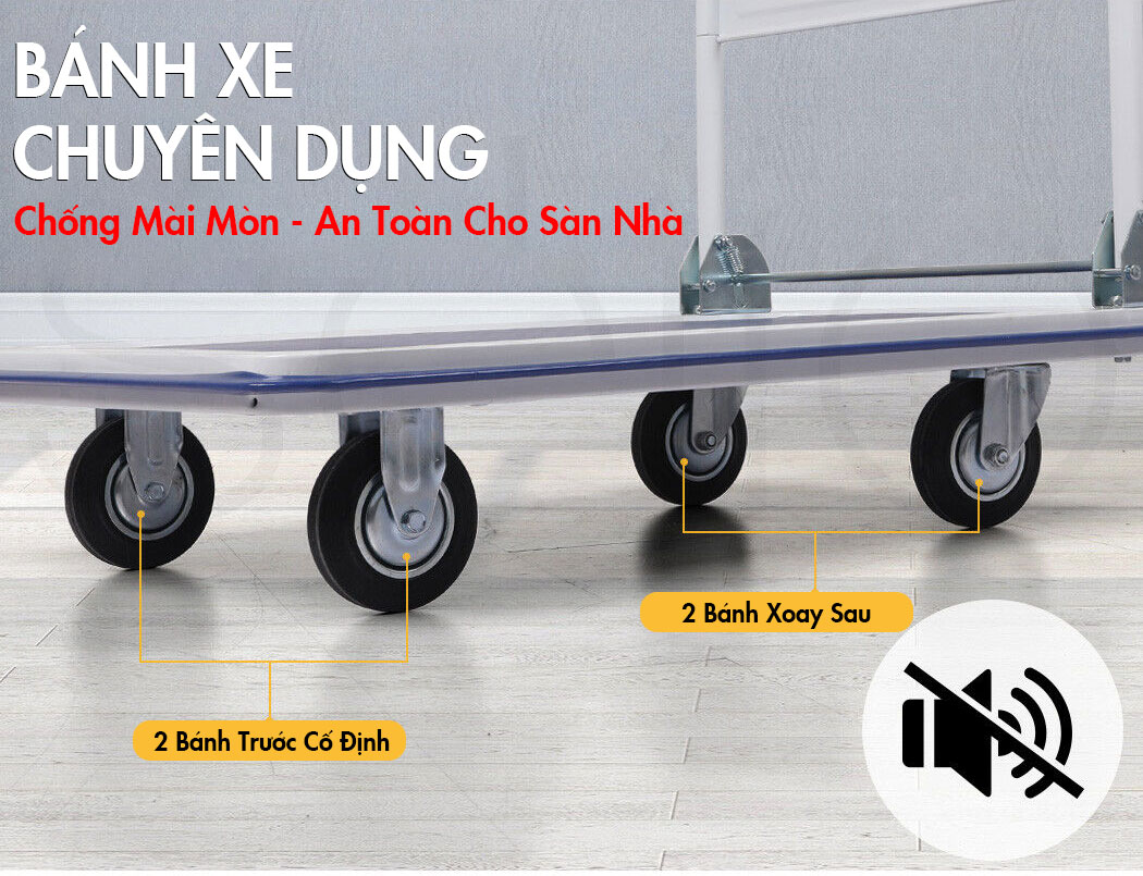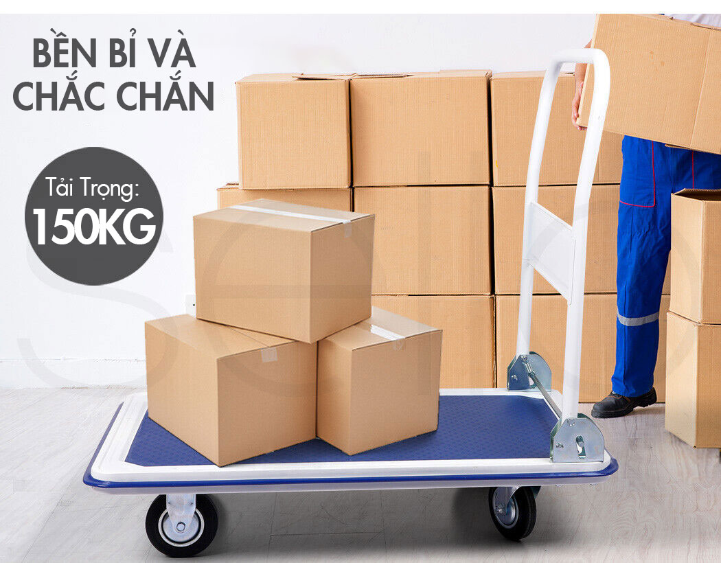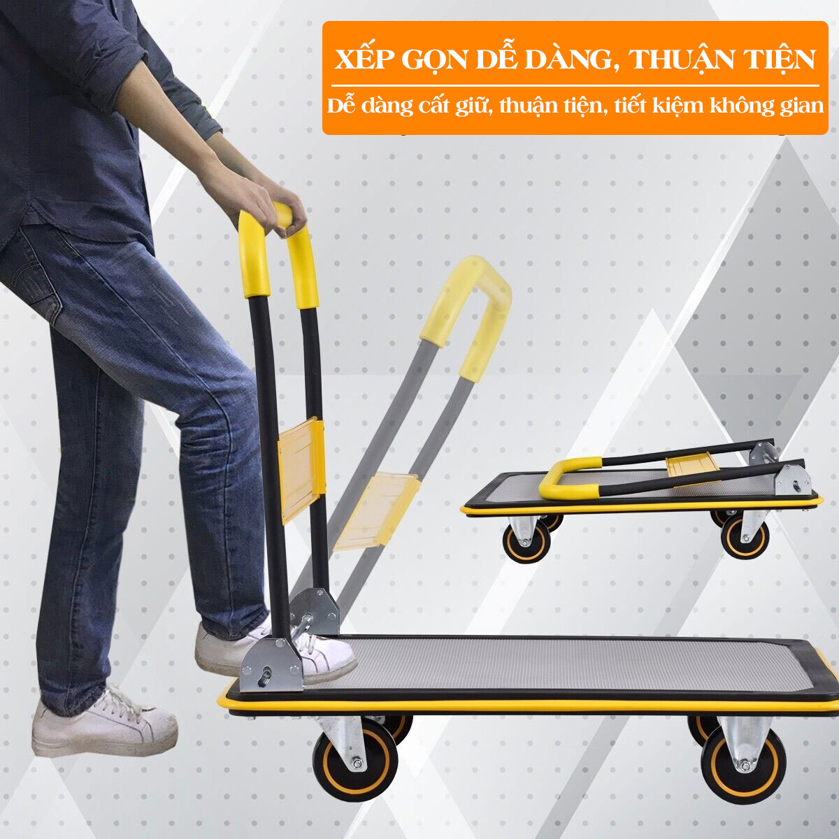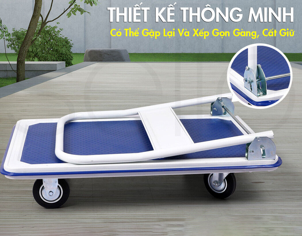 Ưu điểm: Xe đẩy nhẹ, Bánh xe PU loại tốt, càng bánh xe thép dày, đẩy nhẹ, Sàn nhựa dày chịu tải tốt bền bỉ theo thời gian, có thể gấp gọn khi không sử dụng.
