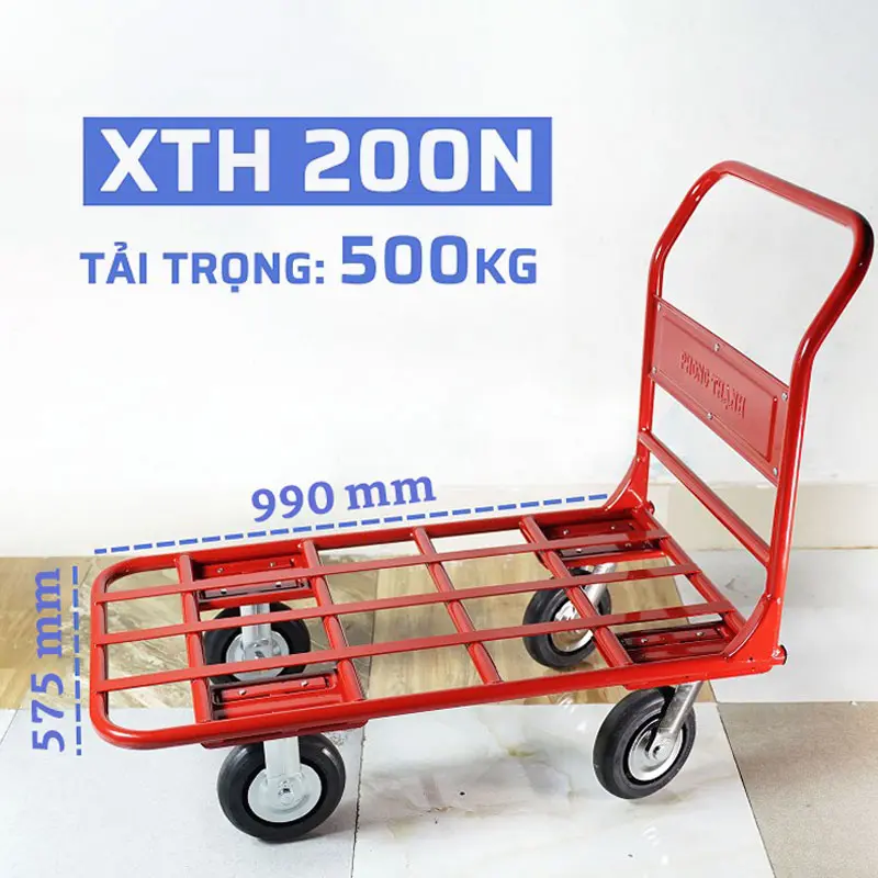 Xe đẩy hàng 4 bánh XTH 200N mẫu xe đẩy hàng 4 bánh gấp gọn của Phong Thạnh, kích thước dài 990cm, rộng 580cm, tải trọng 500kg.